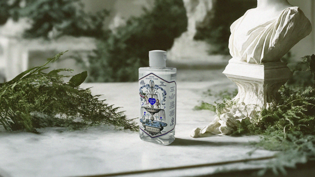 The Amore Seongsu Toner AD package features a fountain motif symbolizing “clean water”, surrounded by various expressions of love, the central theme of Amore Seongsu.